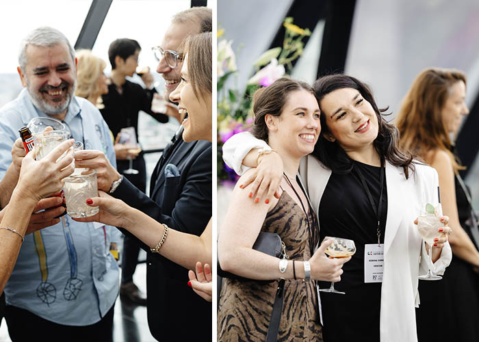 Guests were greeted with cocktails on arrival—including Hugo Spritz and Espresso Martinis—and a stunning sunset over the city added an unplanned but unforgettable backdrop.