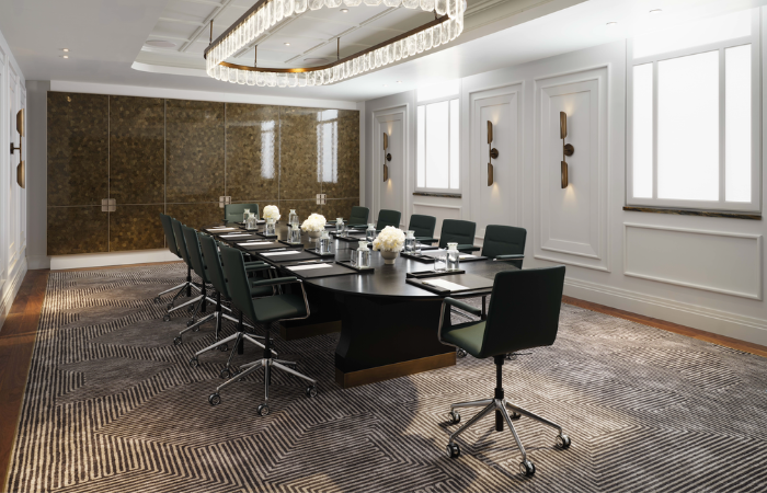 The carpet design played a central role in the architectural dialogue of this iconic hotel. Ulster Carpets developed a series of bespoke Axminster designs that respond directly to the building’s heritage and Goodard Littlefair’s refined interior concept. Across corridors and meeting spaces, the carpets draw on the ideals of the Viennese Secession, using subtle geometry, depth, and texture to unify the scheme.