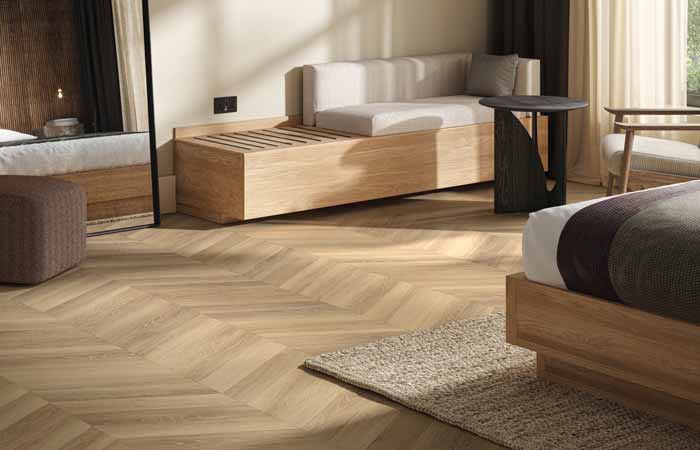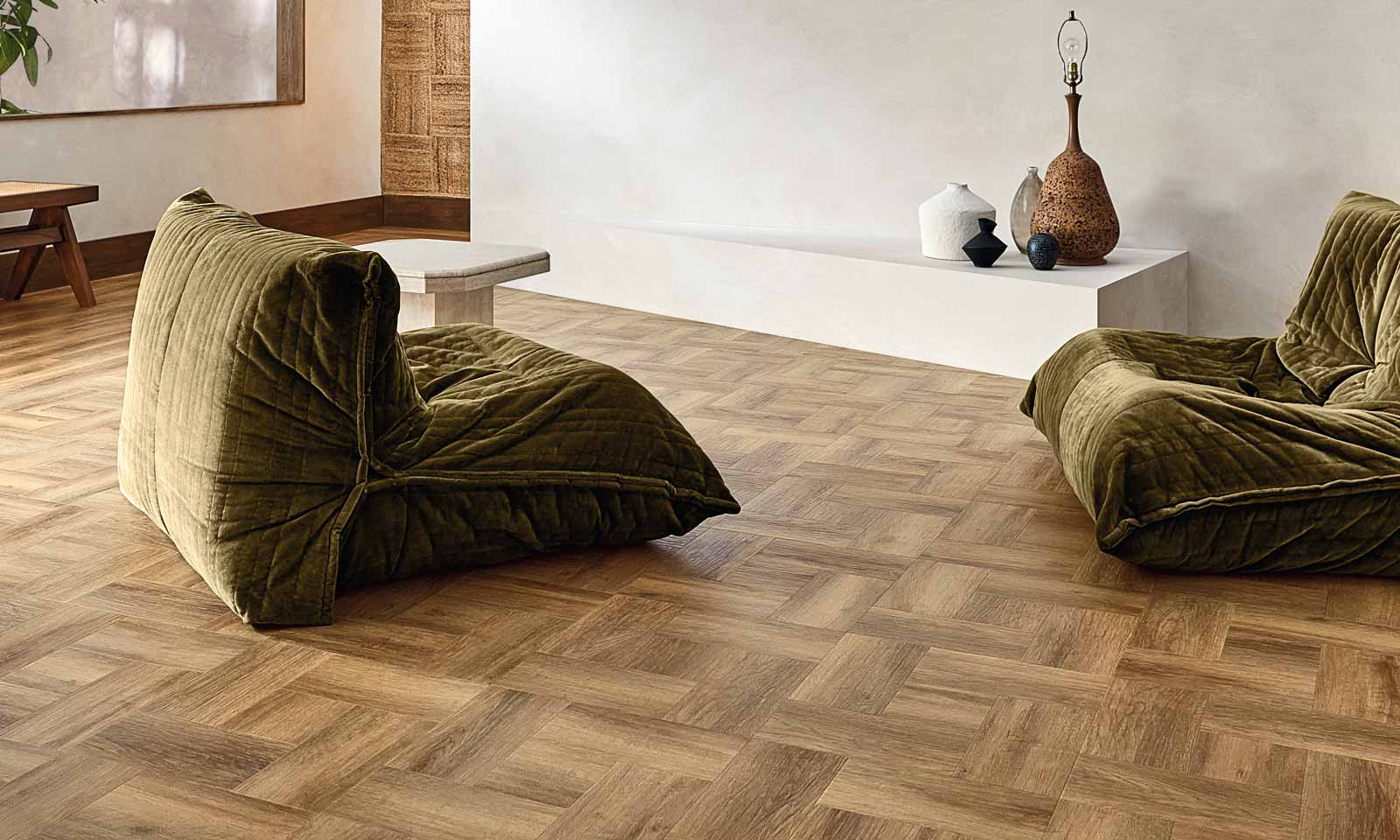 Carefully divided into four Wood palettes – Warm, Neutral, Cool and Saltus – the collection has been enhanced with 18 new hand-crafted oak designs that reflect evolving trends in the real wood market, with more sophisticated, high-grade aesthetics featuring distinctive knots and cracks.
