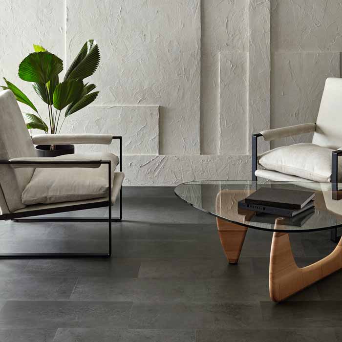 Also joining Form are two contemporary Stones: Ammonite offers fresh cream tones and a subtle warmth without a yellow feel, and Char provides edgy contrast with intricacies and details found in slate. Form’s Stones have a smooth surface texture, close to fine ceramic, which creates a clean, authentic appearance for a natural-looking finish. Unlike natural stones that can be difficult to work with, all six natural-looking Form Stones shades can be specified in Small or Large Parquet and the new Pavestone laying pattern to create impact.