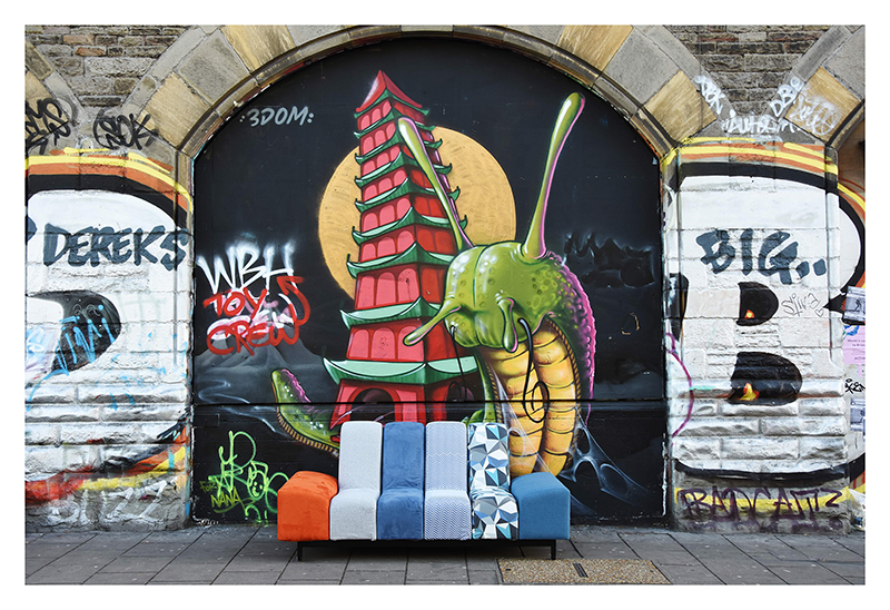 The Modular Collection is a customisable piece of furniture for inner city living where space is at a premium and often difficult to access .The sofa’s modular sections can be rearranged, replaced or added to create a larger or smaller sofa, to allow for adaptability. Each section is customisable, with bright and exciting fabrics, giving the user more freedom to design a unique sofa for their home and offering an emotional connection to the piece. The design allows the sofa to be broken down and transported in a small car allowing it to easily move with its owner.