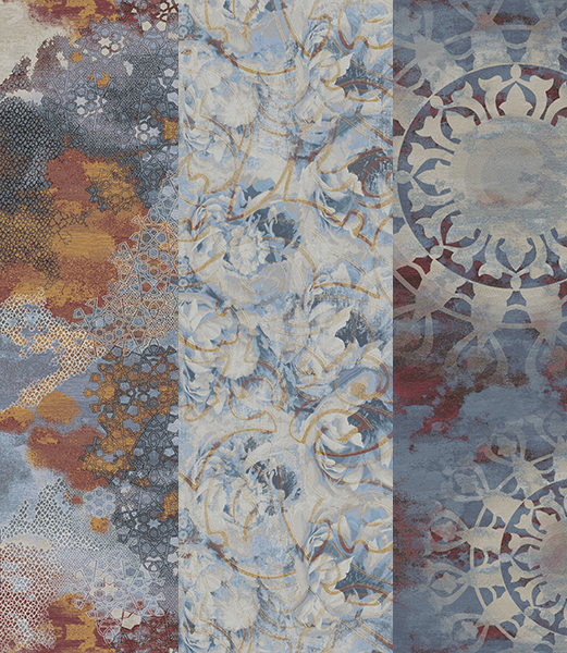 The craft of a mixed media art piece, expressive mark making and rich layering of color and texture along with the integrity of its origin as Egyptian, all contributed to OW’s global design team creating this authentic carpet collection.