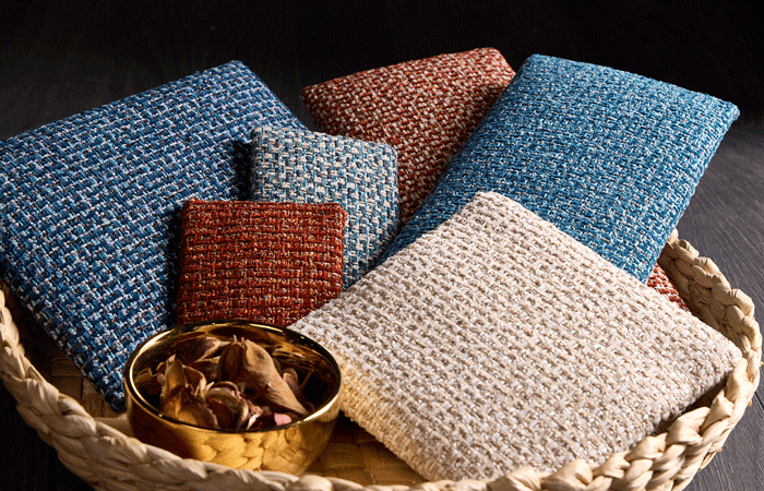 Esme, is a mixture of Polyester and Cotton and pulls together complimentary tones and textures, providing a perfect Upholstery solution for designers to match with other elements within a scheme. Twisted fancy yarns complement a chenille texture, providing a subtle, yet elegant texture and tonal simplicity. Perfect for hospitality bedrooms, bar and lounge areas, or any contract spaces where a little extra protection is a benefit, Esme is offered in a broad palette of 20 Skus and comes with a halogen-free Crib 5 FR backing.