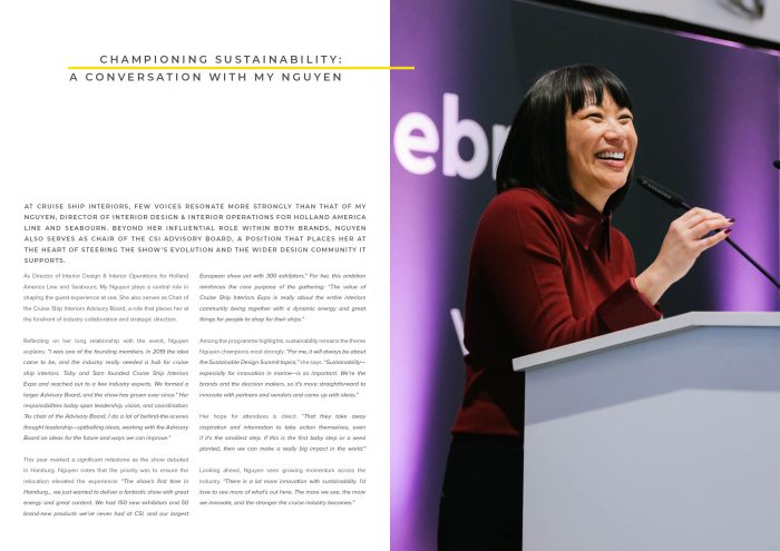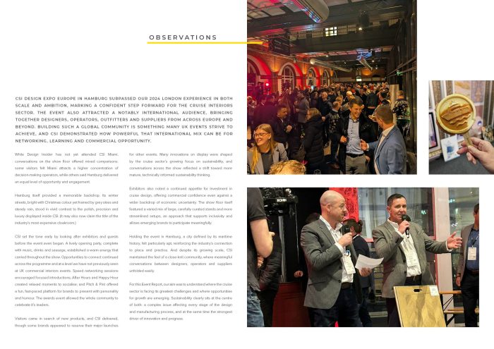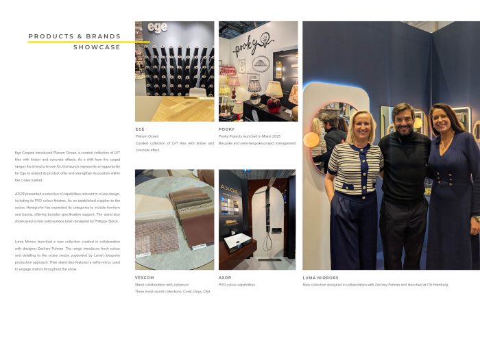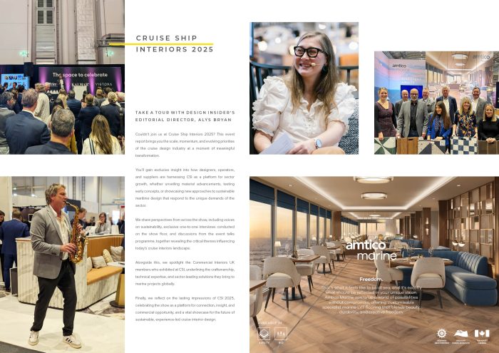 Finally, we reflect on the lasting impressions of CSI 2025, celebrating the show as a platform for connection, insight and commercial opportunity, and a vital showcase for the future of sustainable, experience-led cruise interior design.