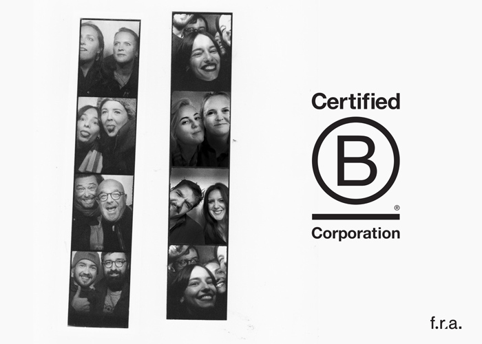 Verified by B Lab, the not-for-profit behind the B Corp movement, the certification confirms that f.r.a. meets high standards of social and environmental performance, transparency and accountability.