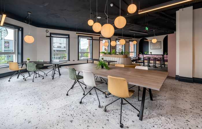 Flexworks features a range of spaces to suit everyone from freelancers to small businesses and brings a fresh, flexible co-working environment to the city, with a refurbishment that’s transformed four previously vacant office floors into shared workspace and private offices. With a focus on flexibility, the environment is designed to adapt seamlessly for different needs, whether meetings, workshops, or social events and the new interior design from Maria Hatton ensures that it’s an appealing space where doing business becomes a pleasure.