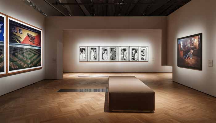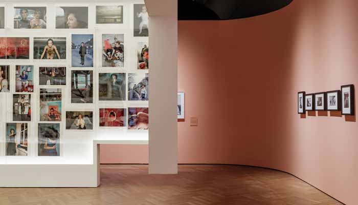 London-based architects and designers EBBA, lead exhibition designers, have created a bespoke environment for each thematic section, with a sculptural approach in terms of geometry and surfaces. The room-sets feature varying wall heights and scales, with the design seeking to develop 2D images into the 3D world of an exhibition via the use of coloured walls, for example, and through a clear architectural response to each section, responding sensitively to the way light affects surfaces and materials.