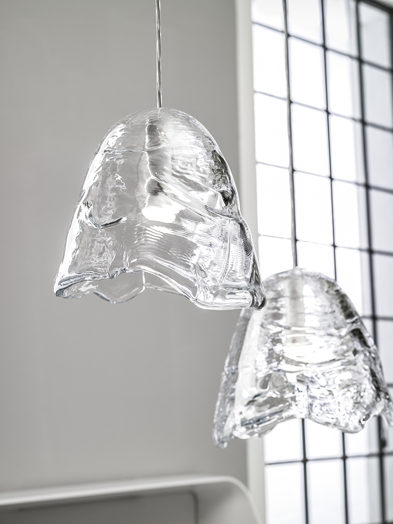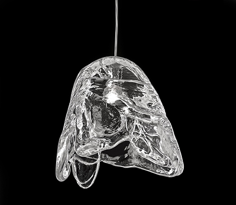 Velčovský found inspiration in ice in nature and applied this element of randomness to his craft, the result is a ‘frozen’ sculpture, combining the richness of glass textures, wrinkled details, bubbles and varied thicknesses.