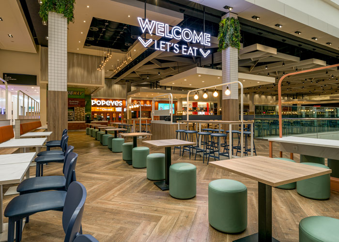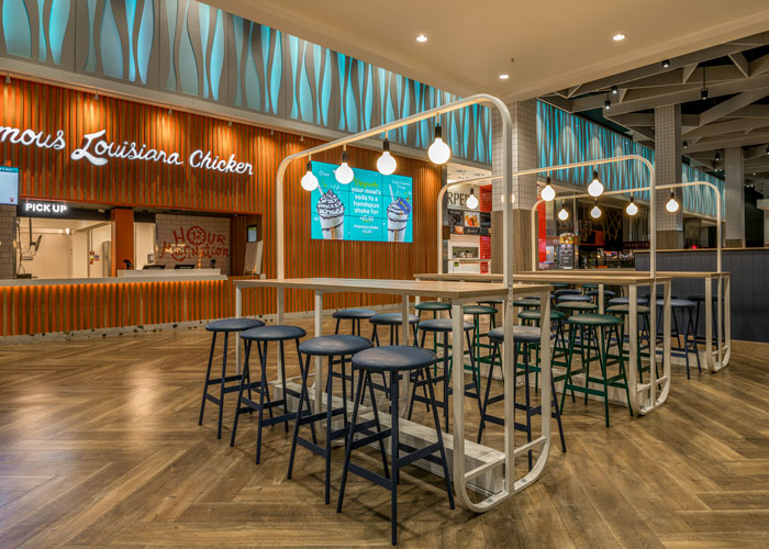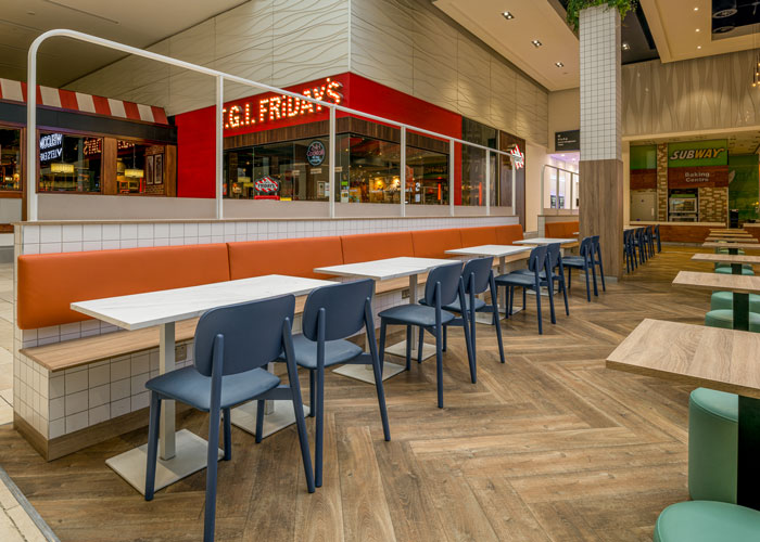 As you can imagine, the food court is a busy, high traffic part of the centre, and so it was essential that the furniture supplied could withstand high usage, as well as looking great.