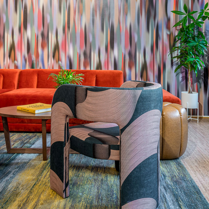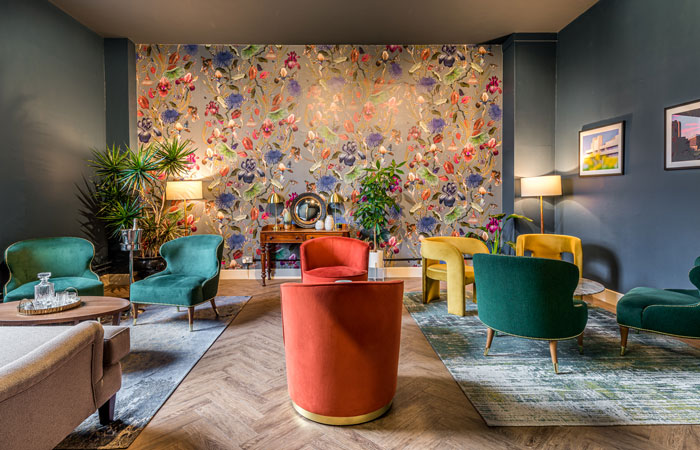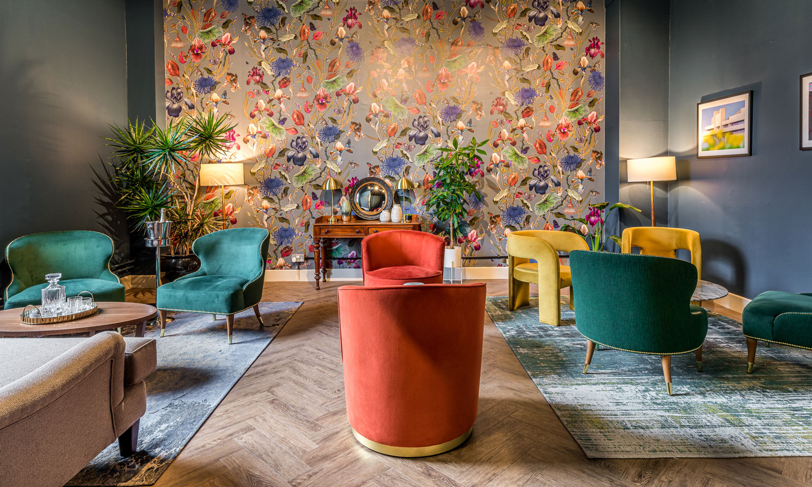 The beauty of creating bespoke pieces is that Furniture Fusion can adjust upholstery, fillings, and fabrics to deliver furniture that will withstand high traffic and look good for years to come. The bespoke Lara chair looks fantastic in this Amelia Graham Riley fabric – a distinctive, striking shaped seat that works so well in this lounge.