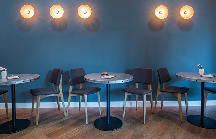 Furniture Fusion has supplied furniture throughout the property, from marble side tables and upholstered chairs in the bedrooms to bar stools, bespoke dining tables, dining chairs and high tables in the restaurant.