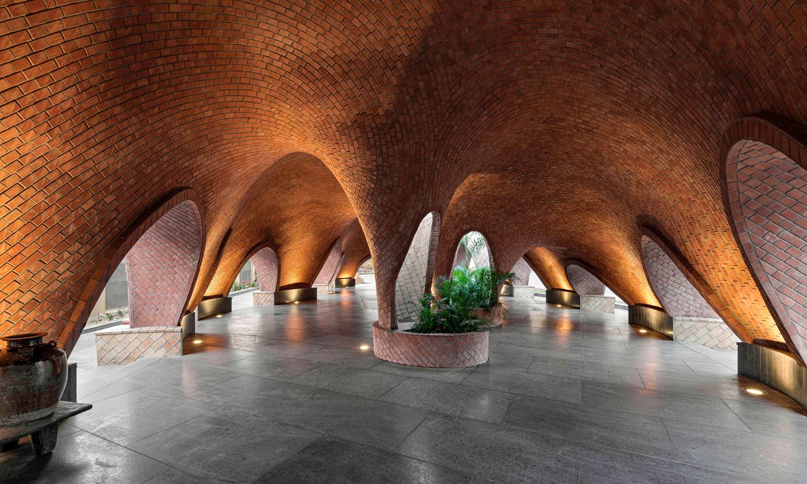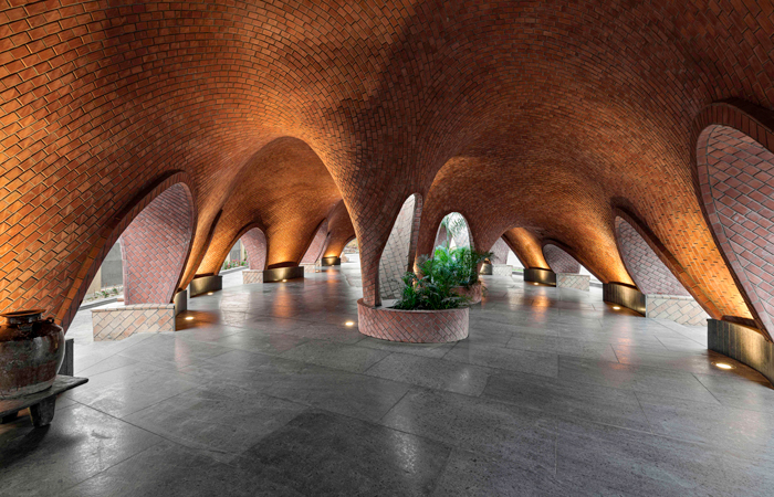 “The client wanted something which was different, sustainable and local.” Co-founder Bhadri Suthar added, “It was important to us to use local artisans, local artists and local materials and the structure is the largest of its kind in India.”