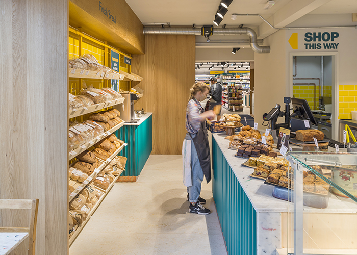 In its brief, Better Food asked the Phoenix Wharf team to create a contemporary, cost-effective scheme that made use of the brand’s daffodil yellow and green identity in its colourway, including its ‘bee’ icon, referring to the vital pollinating role played by bees in our food eco-system. Part of the brief was not to make the new design too upmarket or to risk alienating the business’s long-established core clientele – the business has a very strong community element and many local people in Bristol are proud to associate themselves with it, with a pronounced sense of ownership. Phoenix Wharf carried out an analysis of the retailer’s three existing stores in the early stages, speaking at length to the shopfloor teams in order to find out what did and didn’t work in earlier formats.