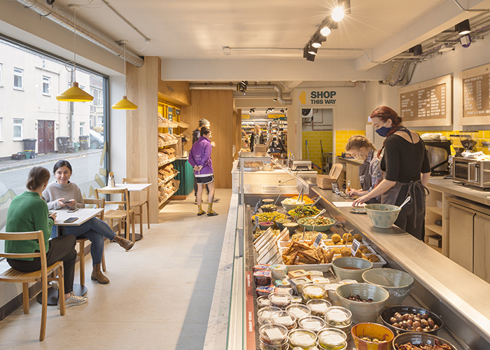 Bristol-based hospitality and retail designers Phoenix Wharf have just completed a new store and café-deli for local ethical foodie heroes ‘Better Food’, who first set up their independent organic, local and ethical food business 30 years ago, starting out supplying veg boxes in the city. The business, which employs over 100 people passionate about food, health, the planet and its customers, has now opened its fourth store – a new 3,000 sq ft combined retail outlet and café-deli on Bristol’s lively Gloucester Road – the UK’s longest road of independent stores.
