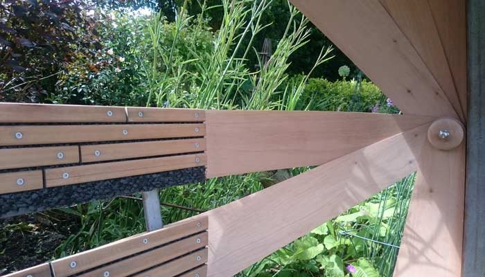 We asked Tim to tell us more about his piece: ‘This Chair evolved in response to the title ‘What can furniture makers learn from Grand Designs?’ Clad in cedar with a rough sawn outer and smooth inner, to echo rough roof shingles and fine interior walls. The rusted steel frame provides a strong minimalist foundation for the seat, back and cladding.’