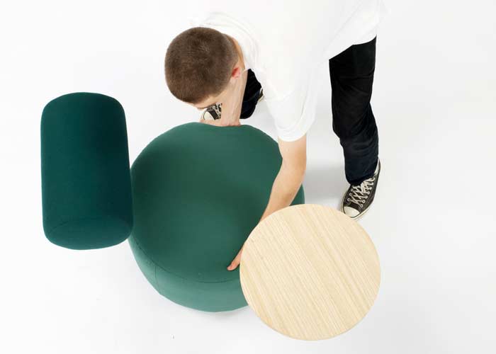 Molly Mason told us a little more about her design Hiatus: ‘Hiatus is a solution for young professionals in need of a relaxed space in the working environment. Like it’s name, Hiatus provides a break in continuity from the formal work desk. Completed with a round upholstered seat, large bolster and circular wooden surface Hiatus provides a place for miscellaneous tasks combining productivity and comfort. ‘
