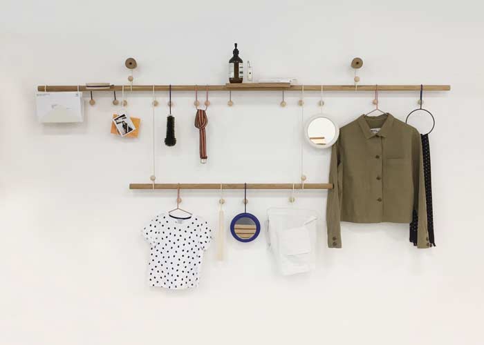 Jisue Park will be exhibiting several exciting design collections, here we learn more about her Hanger Rail System: ‘Creating a hanger system, which encourages the user to display objects they use on a daily basis.  This organisation of key belongings creates a personal order.  The system is designed to grow and reduce supporting families needs change over tim­­­e.  From single person to couples, children and families.’