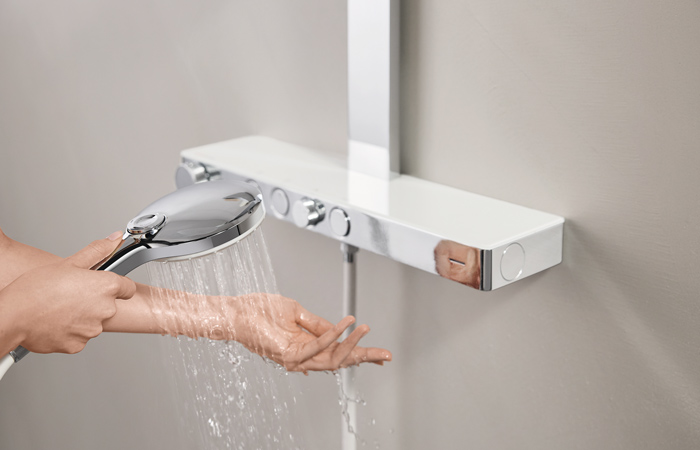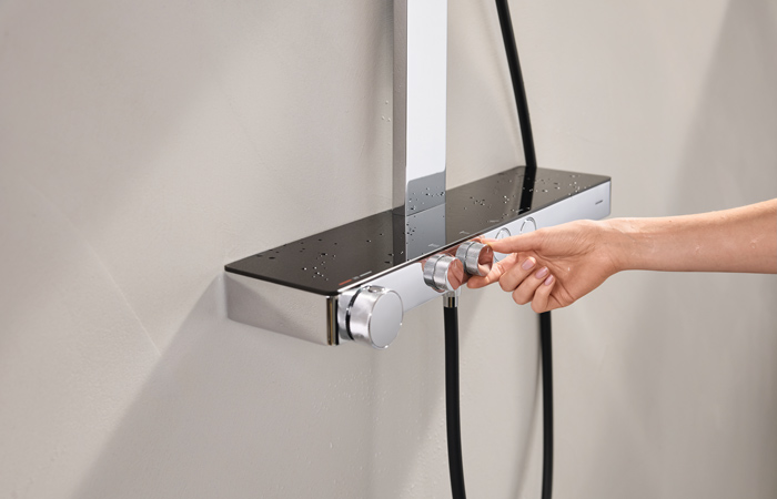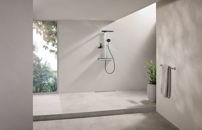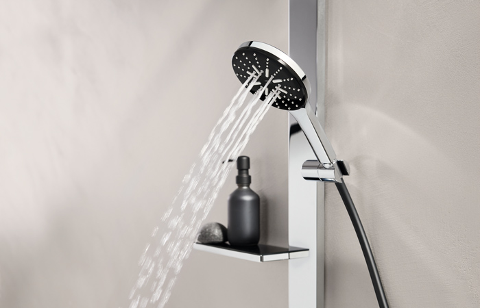 The hand shower enables the individualisation of the experience with three different spray variants: Rain, Active Massage—a pulsating spray—and Rain+, which blends air and water for pure relaxation of body and soul. The different spray patterns and the head and hand showers are effortlessly orchestrated using the SmartControl thermostat, which facilitates seamless adjustments of temperature and flow. It enables users to increase the volume from Eco to Full Flow, or to dial it down, with a simple twist of the button, and even allows them to save personal settings for future indulgence.