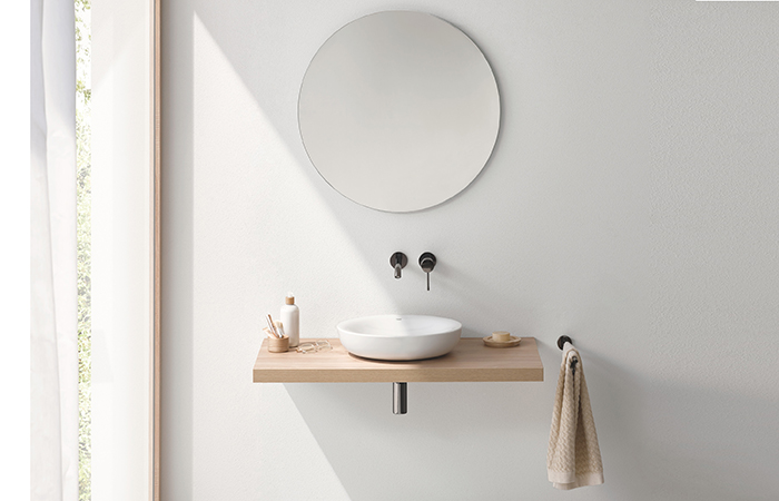 GROHE Essence offers three sizes of vanity basins which feature a new positioning of the overflow which now sits opposite the tap – or in some cases has been removed altogether – whilst the stylish ceramic drain caps help to deliver that highly sought after, uninterrupted aesthetic.