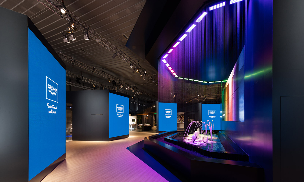 The stand highlighted the variety of GROHE’s product offerings, from bathroom to kitchen, and included eye catching displays such as a tropical area featuring the over one metre long statement showerhead Aquasymphony, complete with light, sound and steam functions.
