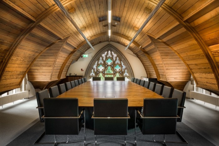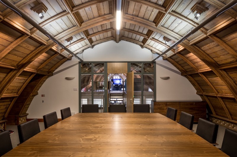 With their new offices being located in an impressive church conversion HANDS jumped at the chance to assist and proposed a solution from our latest table collection, INFINITY. Finished in American Black Walnut veneer with jet black lacquer prism bases, our PRECEPT cantilever chairs are the perfect compliment.