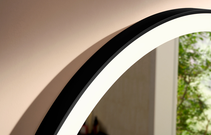 The energy-efficient LED technology on the top or side edge of the mirror silhouette creates an atmospheric, seamless lighting experience. Optionally, hansgrohe Xarita Lite is also available in a round version. Here, a circular, continuous light field provides particularly flattering illumination. With its consistent rounded design, Xarita Lite mirrors complement all hansgrohe washbasin products.