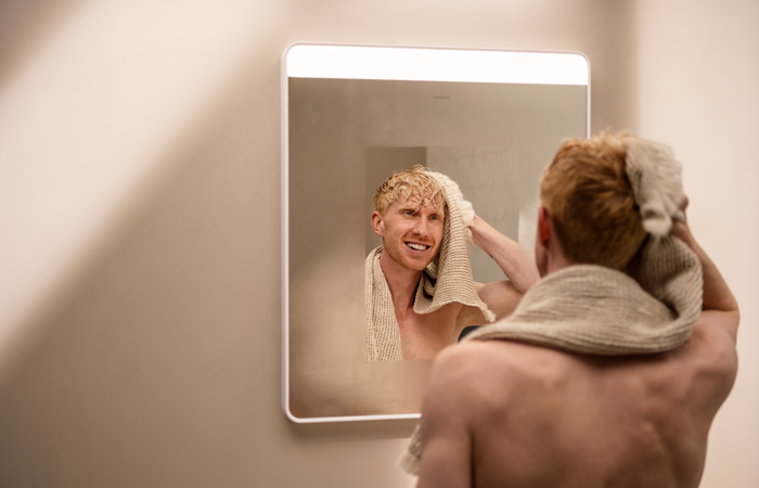 All design variations are available both for operation with a wall switch and with an infrared sensor. Xarita Lite mirrors with non-contact infrared sensor interface also have a dimming function for setting the individual light ambience. The memory function ensures that the bathroom continues to shine with your personal feel-good light the next time you switch it on. Cleverly, the automatic switch-off function ensures that no energy is wasted unnecessarily. The integrated mirror heating ensures a clear view after the shower and even more comfort in everyday life.