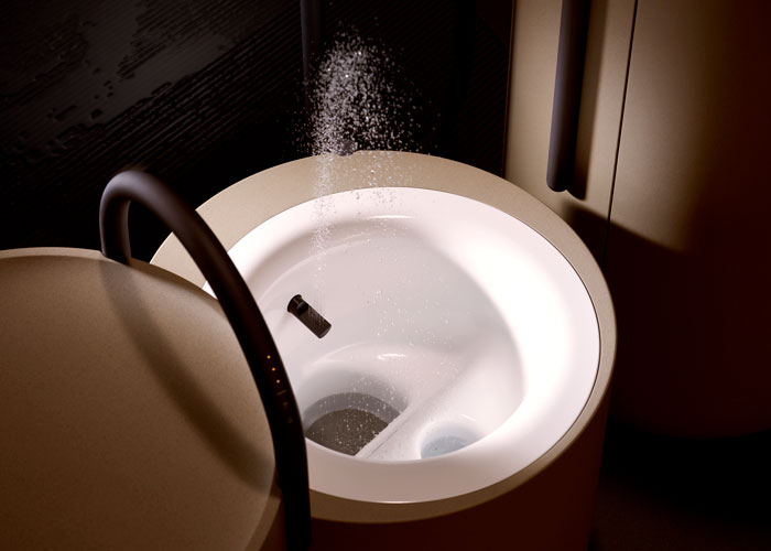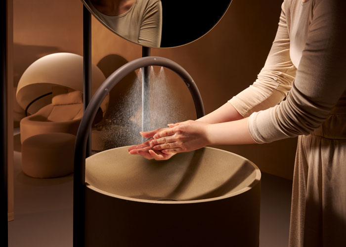 The platform also includes a new visionary wash station, featuring three spray types: a non-heated, misty spray for hand/face washing, and both heated and non-heated mono spray for smaller hygiene rituals. The wash station also features a sensor on the arc to detect the desired spray type, which stops automatically as soon as the hands are no longer beneath the spray nozzles, to prevent the unnecessary use of water.