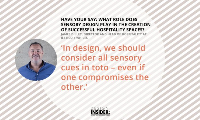 We’re interested in the use of sensory design across the commercial sector, so we also asked James Dilley, Director and Head of Hospitality at Jestico + Whiles an extra question: What role does sensory design play in the creation of successful hospitality spaces?