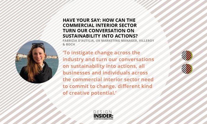 ‘To instigate change across the industry and turn our conversations on sustainability into actions, all businesses and individuals across the commercial interior sector need to commit to change.