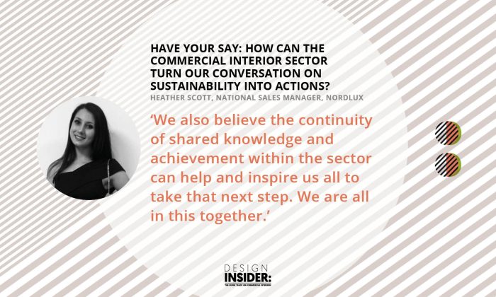 ‘The conversation around sustainability within the commercial interiors sector is really exciting at the moment. There are simple steps we can take to turn the discussion into practical action points and make a big difference.