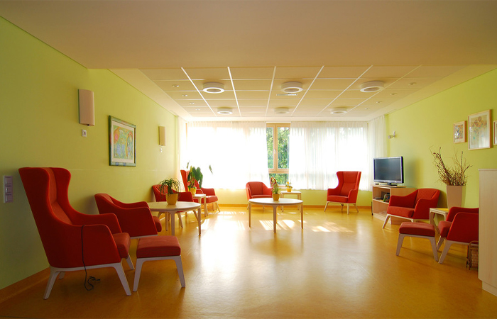 The loudspeakers integrated in the wing chair cannot only be used for re-laxing entertainment, but also to support memory training, e.g. for people who suffer from dementia. Music and sounds from personal memories help to stimulate the senses in a very individual way, which creates positive feelings.
