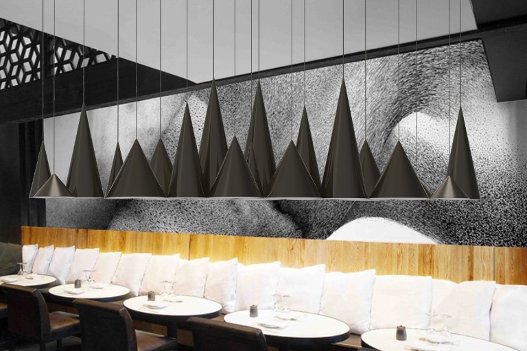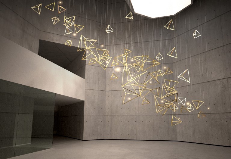 Chris Fox commented on the range of installation designs “Heathfield & Co are very open to new ideas, choice of materials, shape and form, giving me space to explore. I experimented a lot with material combinations in the designs as Heathfield & Co have a lot of capabilities in glass, metal, and ceramics. You have to think a lot about how they transmit, reflect and colour light, but this also allows you to play. Light installations after all can be very sculptural and create a focal point within a space”.