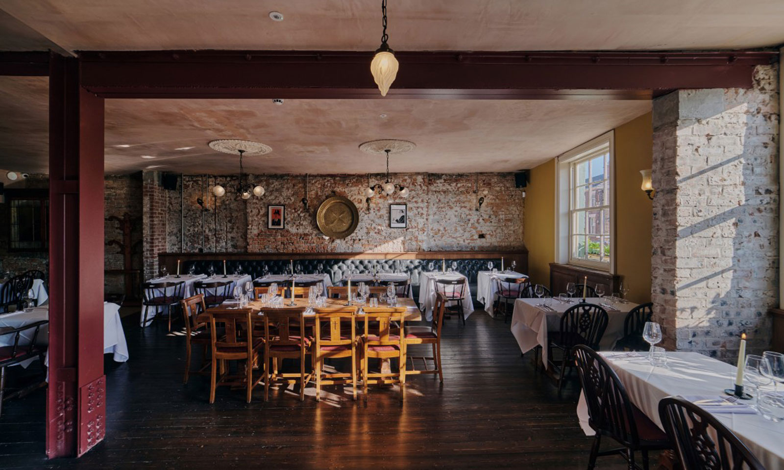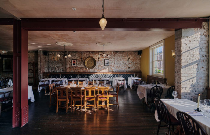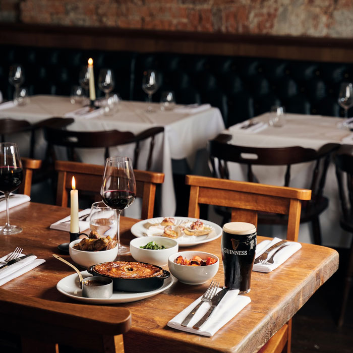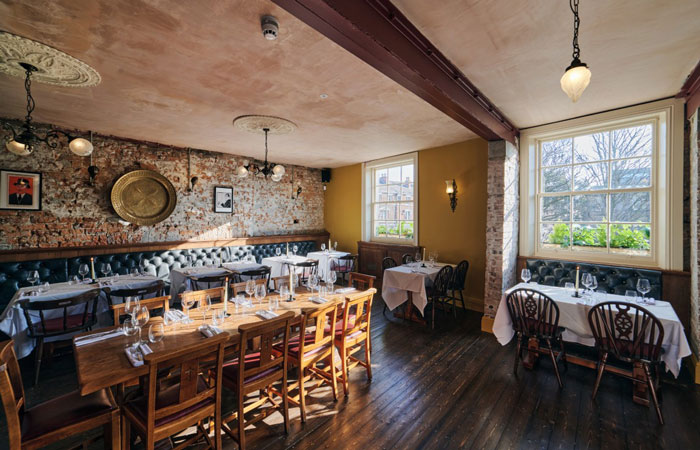 - A varied selection of tabletops, including zinc, marble, and oak, chosen to reflect the character of each room – elevating the aesthetic while providing hardwearing surfaces for daily service.