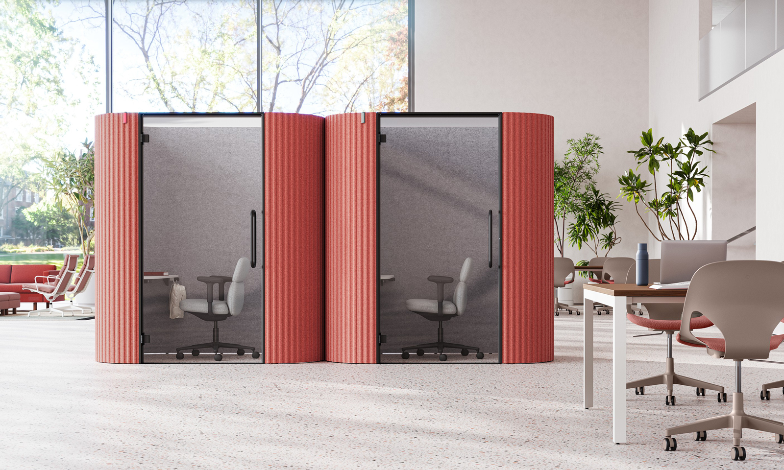 Available in two sizes, the larger Pro version is ADA accessible, designed with the necessary space to manoeuvre a wheelchair, and sits at floor level with no threshold. Both standard and Pro sizes can be paired with all the comforts that help individuals work, with ample space for ergonomic seating options—including the full portfolio of Herman Miller performance seating and task chairs.
