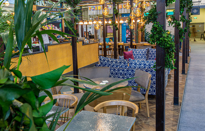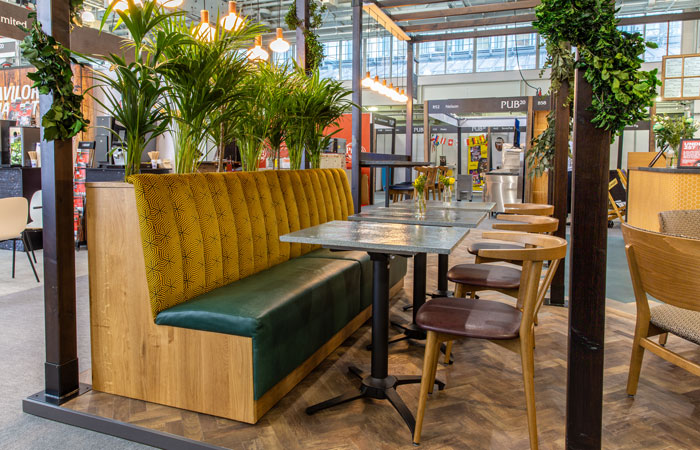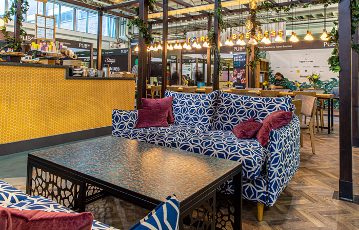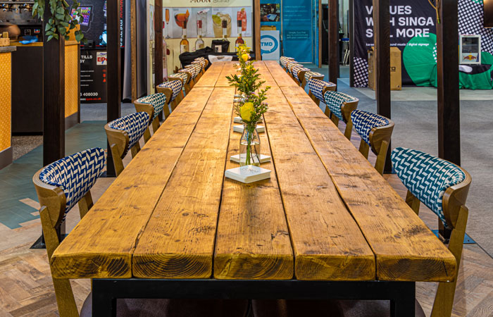 Hill Cross Furniture was chosen by Form Creative (thanks to their existing relationship) to supply the furniture for ‘The Watering Hole’, the official food outlet at PUB20 – The only dedicated show for the UK Pub industry.