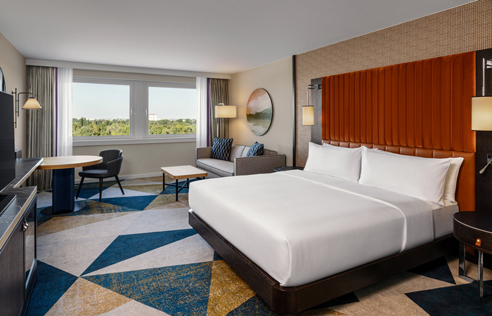 The Hilton Danube Waterfront boasts 340 meticulously designed rooms, each thoughtfully crafted to provide the utmost comfort and style. THDP has infused each room with a sense of modern sophistication, utilizing a harmonious blend of high-quality materials, contemporary furnishings, and subtle yet impactful design elements. The design aims to create a sanctuary for guests, where they can unwind and enjoy the beauty of their surroundings while experiencing the highest standards of hospitality.