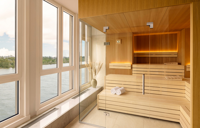 The new wellness area at the Hilton Vienna Waterfront features three saunas, including a panoramic sauna with a view of the Danube, as well as a massage and relaxation room. Perfect for unwinding after a busy day of meetings!