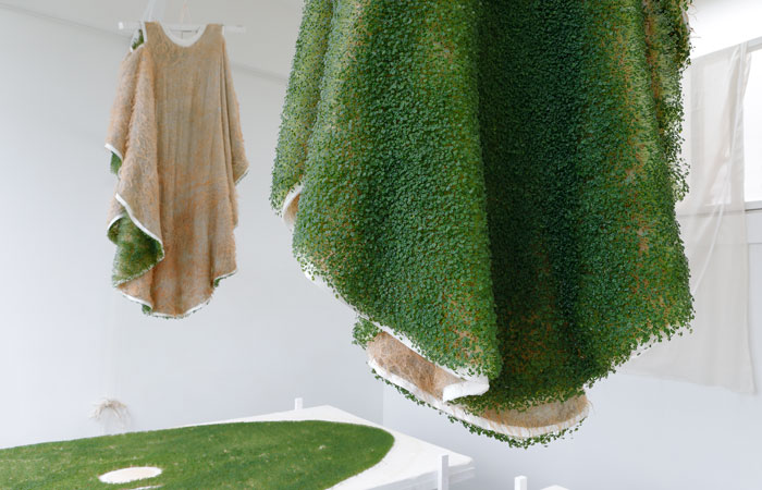The idea of growing surface materials is shared by Dasha Tsapenko, although her focus is on a different application. Growing Fur seeks to rethink our relationship to clothing and in the process, our place in the ecosystem. By cultivating seeds onto fabric, in this case Chia seeds, she has created wearable living surfaces that require nurture and care. Whilst still relatively conceptual, the idea is a far cry from those established by fast fashion and one that forces us to reconsider the way in which we consume our clothing.