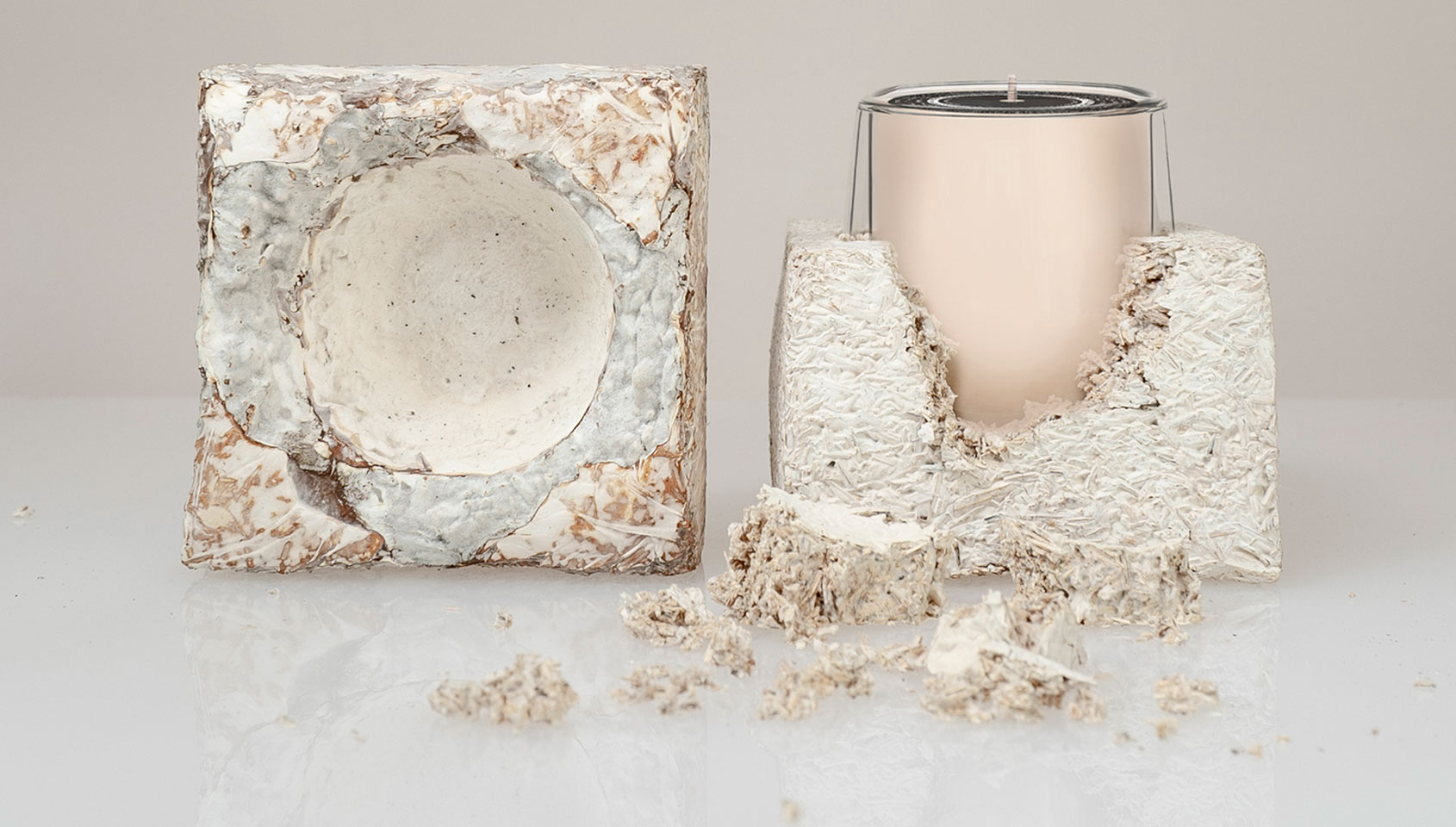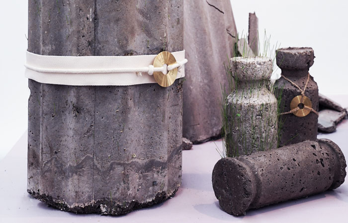 Exploring one’s heritage and with it, our deep connection to the earth, is pertinent to a generation of designers old enough to have experienced an education system that spoke of climate change, but young enough to realise that they must take a lead when it comes to making a positive change for the planet. Having grown up in rural Sicily, Royal College of Art graduate Martina Taranto has clear views on how, “human intelligence and sensibility have a crucial role to play in the next generation of a super-organic natural world,” the fundamental responsibilities of which are “to embrace a greater ecological and ecosystemic balance.” Her project Viral Nature comprises objects made from a specially formulated composite that is 84% organic and most importantly, able to host life. The material is embedded with seeds that will sprout and commence a natural cycle of growth, meaning that a piece such as the Fusto Stool will one day be covered in greenery. In order for the objects to thrive a conscious user is required, and as they continue to tend to the piece, greater emotional connections to nature are made. What’s more, should the objects ever fall into disrepair they will not become a permanent ruin but instead slowly integrate directly back into nature.