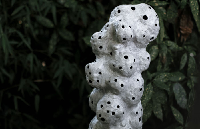 Having grown up learning about insects from her beekeeper father, Marlene Huissoud is no stranger to the plight of bees. Her Central Saint Martins graduate show explored the potential of insect waste streams, “co-partnering” with bees and silkworms to create new materials. Having continued to research and experiment in this manner, producing sumptuous sculptural forms and surface materials inspired by and ‘from’ nature, one of her latest creations can rather aptly be described as a “hotel for bees.” Whilst that may sound like a novel idea, Marlene is emphatic in her reasoning, “We have been selfish. We have used resources of our dear planet, but it is not a time to cry, it is a time to act. These hotels are made for pollinators to find a refuge, nest and hibernate.” With insect numbers sharply declining and biodiversity at a risk, projects like this are invaluable in offering both a sanctuary for insects and awareness of the problem. The colours used are specifically chosen to reflect those that bees are attracted to in nature and the materials used to make them are from nature, namely unfired clay, which is coated in a natural binder to make them weatherproof.