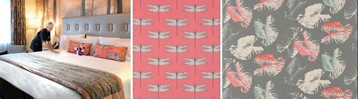 Yvonne Clarke of interior and architecture firm Clarke & Whiteman shares the creative approach they took, “located in lush parkland, the Crowne Plaza Northwood rooms have been designed to set an ethereal scene with botanical references in a soft warm palette of corals, taupes freshened with a hint of mint green. Style Library Contract worked with us to develop the Palmetto range into bespoke finishes that suited our specifications. Our Client, Tifco Hotel group were delighted with the results”.