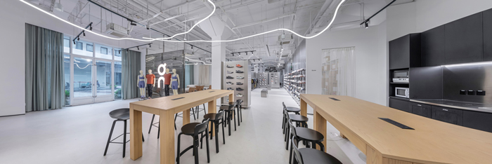 Innovative global sportswear brand, On, has recently experienced exponential growth, outpacing its existing workspace. The company sought M Moser’s expertise to reinvent its Shanghai workplace for hosting events, displaying products and enabling collaborative work.