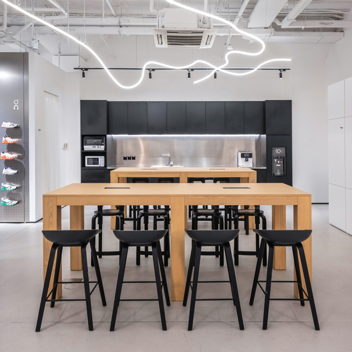 Every element in this workspace thoughtfully incorporates On’s ethos and celebrates the essence of running. From the product display and experience area to dynamic and adaptable workspaces.