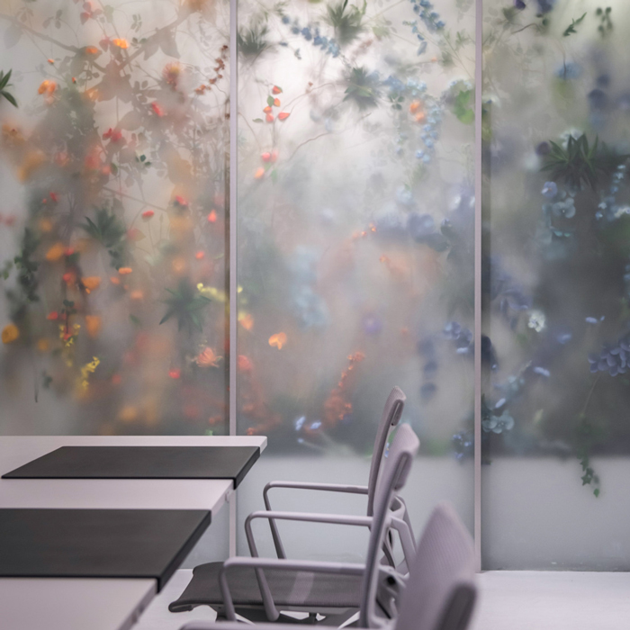 To ensure that employees have dedicated spaces for deep concentration, M Moser also introduced seasonally themed focus areas – spring/summer and autumn/winter. Decorated with plants and frosted floral designs on the glass windows, these tranquil spaces support concentration and efficiency while creating a calm, green oasis for staff.