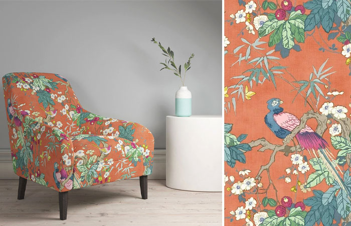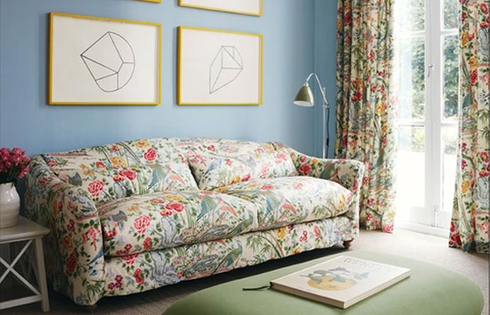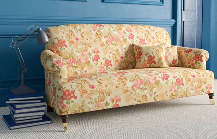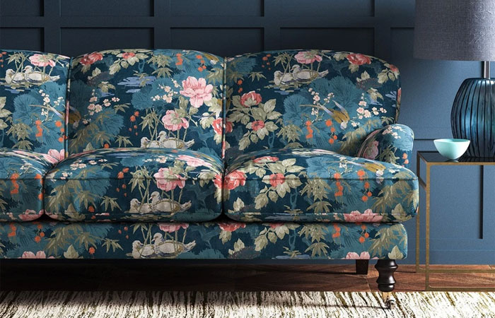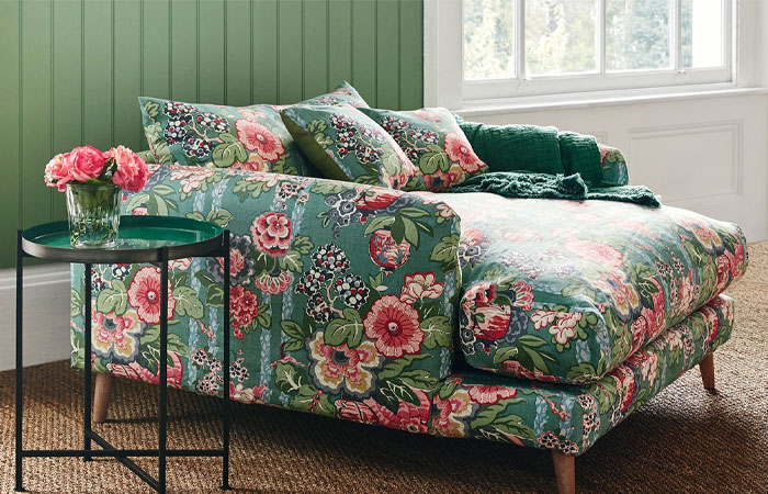 After living in neutral homes for the past 20 years, it’s understandable that many of us might be afraid of pattern. To ease yourself into decorating with florals, try upholstering just one armchair or footstool. This chair is covered in fantasy floral, Uhura. The sunny fabric would look charming alongside a chestnut leather sofa; ideally one that has a lived-in feel or consider tone on tone fabrics to keep the look fresh. For something more modern, scatter pretty blooms over an oversized love seat. Louis is the perfect choice, and this linen fabric is available in an array of colours that beautifully highlight the pretty flowers of the design.