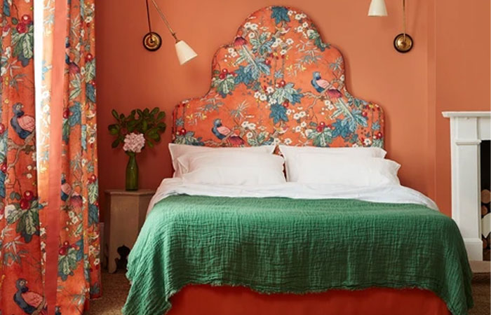 For stylist and author Katrin Cargill the key to decorating with florals is colour. ‘When I created this bedroom for a recent shoot for Linwood,’ says Katrin, ‘I wanted to find a paint colour to really make the fabric – Miji from the new Belleville collection – sing. There’s a beautiful clarity of colour to the design, so I played around with many paint shades before settling on this from Papers and Paints; it not always the most obvious colour that works.’ Matching bedhead and curtains could have felt slightly dated, but the inclusion of mid-century reading lights and an informal rug in a complimentary shade create an inviting room with a contemporary edge.