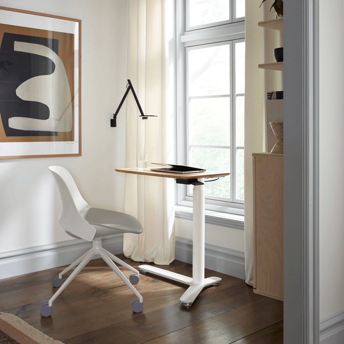 Humanscale’s height-adjustable Float Mini tables offer an ideal solution for improving well-being and productivity—wherever work happens. Powered by a pneumatic cylinder, Float Mini promotes natural movement with a smooth, adjustable worksurface that glides effortlessly to different heights, eliminating the need for proximity to a power source and ensuring ergonomic comfort in any setting.