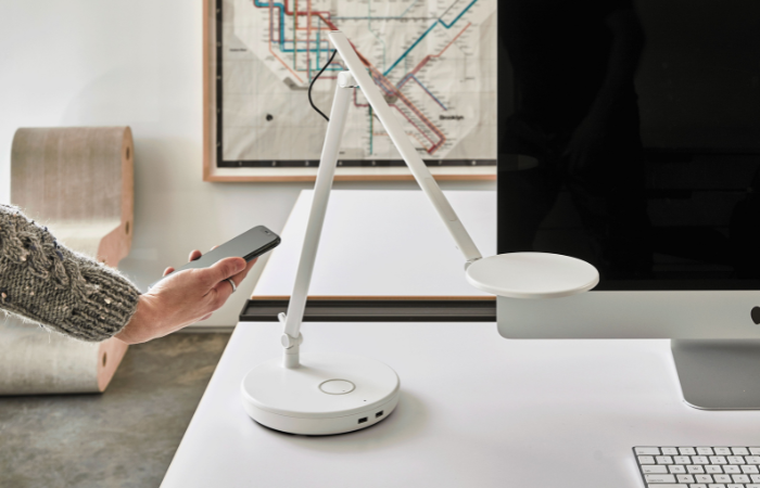 Setting Nova apart from other task lights is its optional desktop wireless charging base, complete with two USB ports. This thoughtful addition keeps devices powered throughout the day and helps declutter work surfaces by removing the need for loose charging cables.