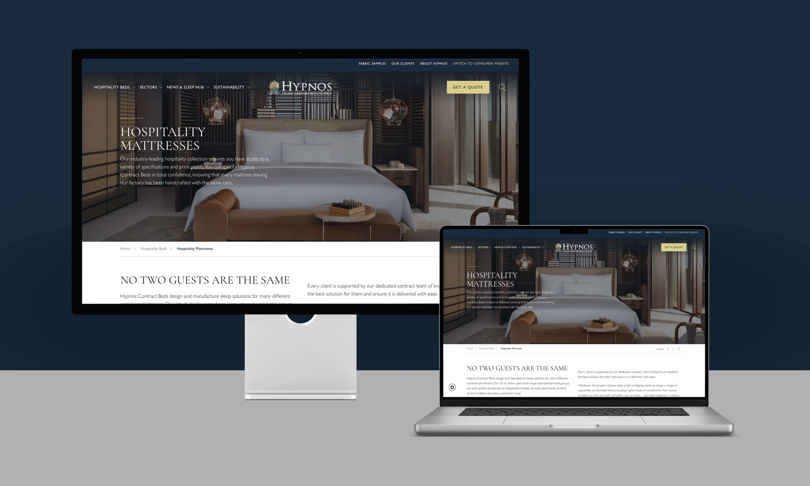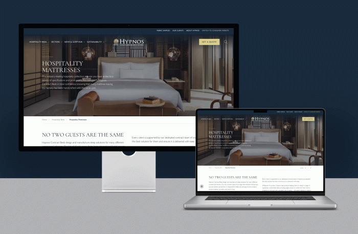 Struan Robertson, Head of Digital Experience says, “The old Hypnos Contract website had reached the end of serviceable life and so we used it as an opportunity to start from scratch and create a brand-new website, taking a strong visual lead from the new retail-focused website that we launched last year. Our goal was to deliver a better all-round experience for our contract customers by making it easy to find out about the Hypnos brand, and our complete service solutions, research our beds and sofa ranges – whilst being inspired by some of the extraordinary luxury hotels and hospitality properties that Hypnos supplies beds to, from London to Dubai and all over the world”.